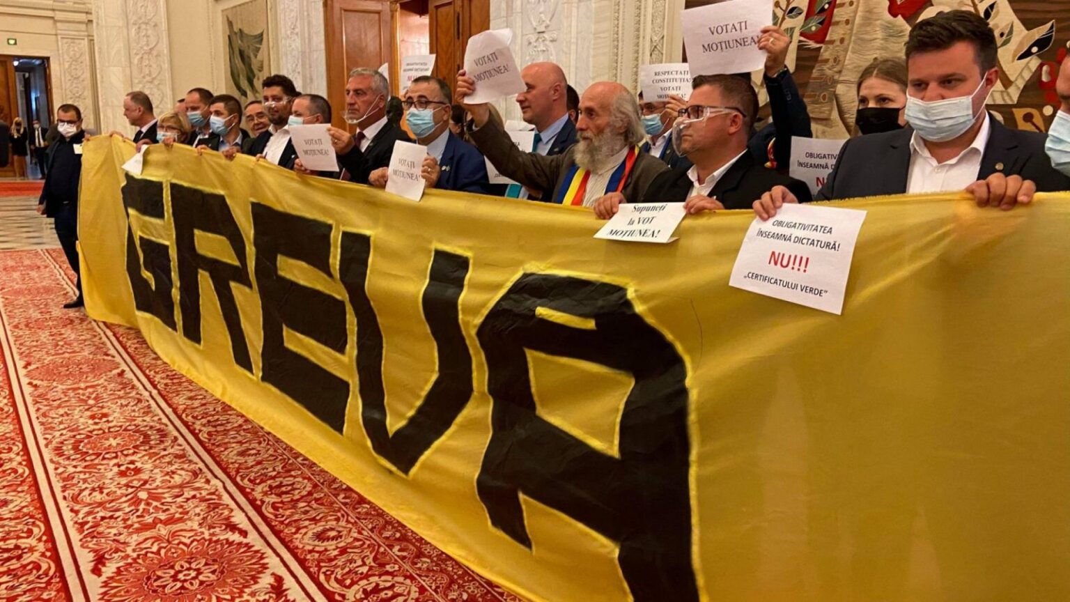„Florin Cîţu trebuia demult să nu mai fie prim-ministrul României. S-au folosit de tertipuri şi au călcat în picioare Constituţia României şi, de aceea, singura formă prin care putem să protestăm este să intrăm în grevă parlamentară. Este un gest fără precedent. Nu vom participa la votul de astăzi din plen şi nu vom vota în comisii, dar suntem prezenţi cu toţii. Luăm parte la dezbaterile din comisii, însă nu vrem să girăm prin votul nostru şi prin prezenţa noastră această încălcare gravă a Constituţiei. Este dreptul nostru de a depune moţiune, este dreptul românilor de a nu mai fi conduşi de Florin Cîţu”, a explicat Simion demersul partidului său.