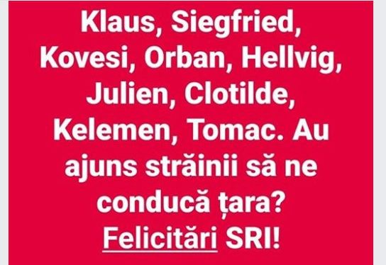 Astfel, în urmă cu două zile, Cristian Misăilă, primarul PSD din Focșani, a postat pe contul de Facebook un mesaj puternic xenofob, acuzând că ”au ajuns străinii să ne conducă țara”. El enumeră numele câtorva lideri liberali sau din USR și scrie ”Felicitări SRI”.