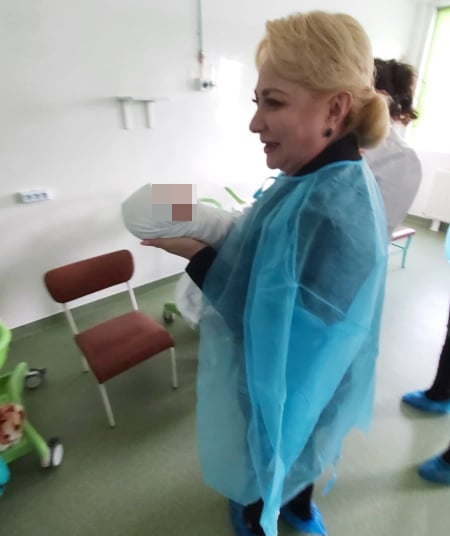Premierul demis Viorica Dăncilă, candidata PSD la alegerile prezidențiale, și ministrul demis al Sănătății, Sorina Pintea apar în fotografii în secția de de Neonatologie și Pediatrie ale Spitalului Județean Sf Pantelimon Focșani ținând în brațe nou născuții din secție. Cele două apar îmbrăcate cu halat și papuci de unică folosință, dar mai mulți utilizatori de pe Facebook au criticat că cele două nu ar fi trebuit să fie lăsate să ia în brațe bebelușii după ce ar fi venit direct de pe stradă.